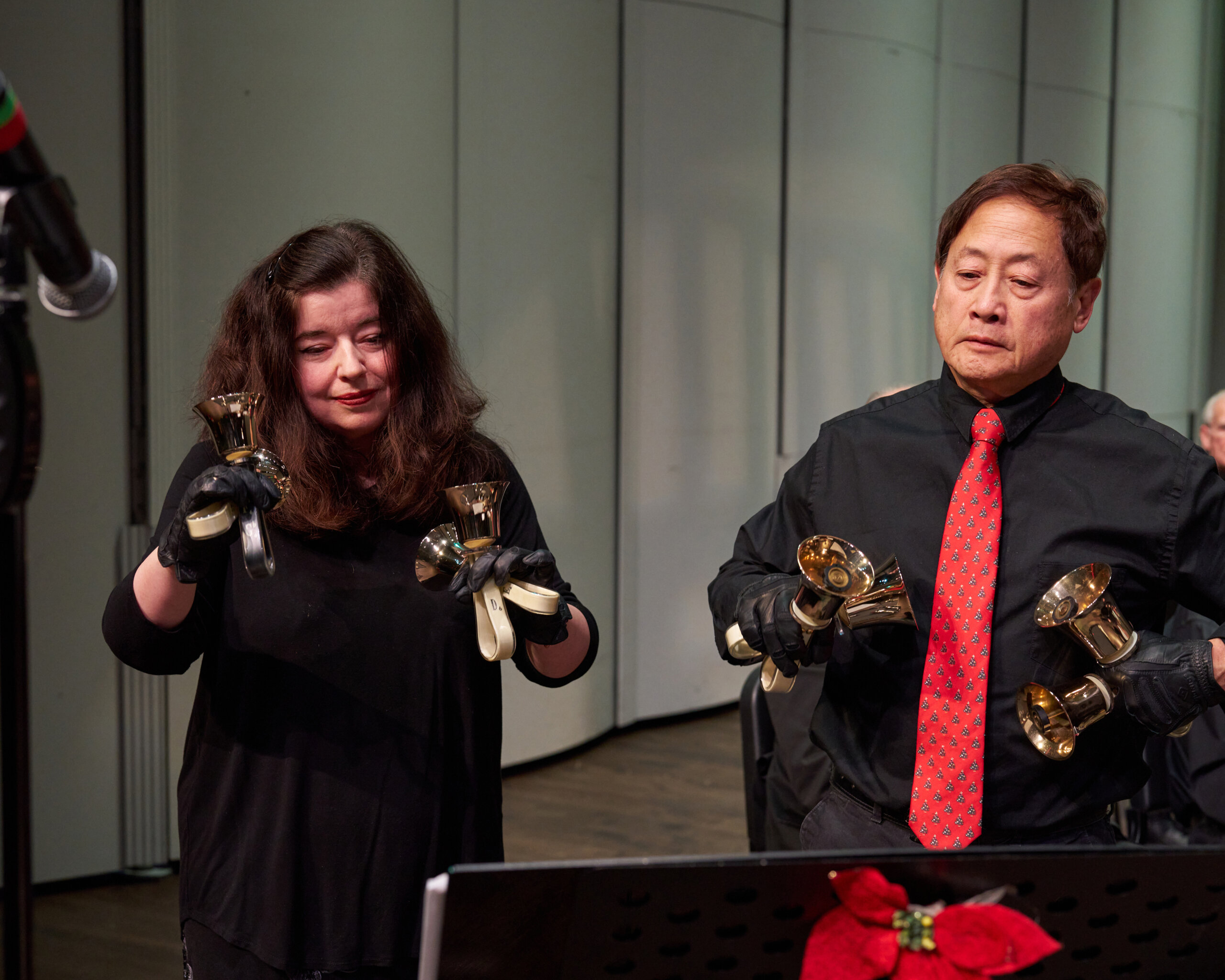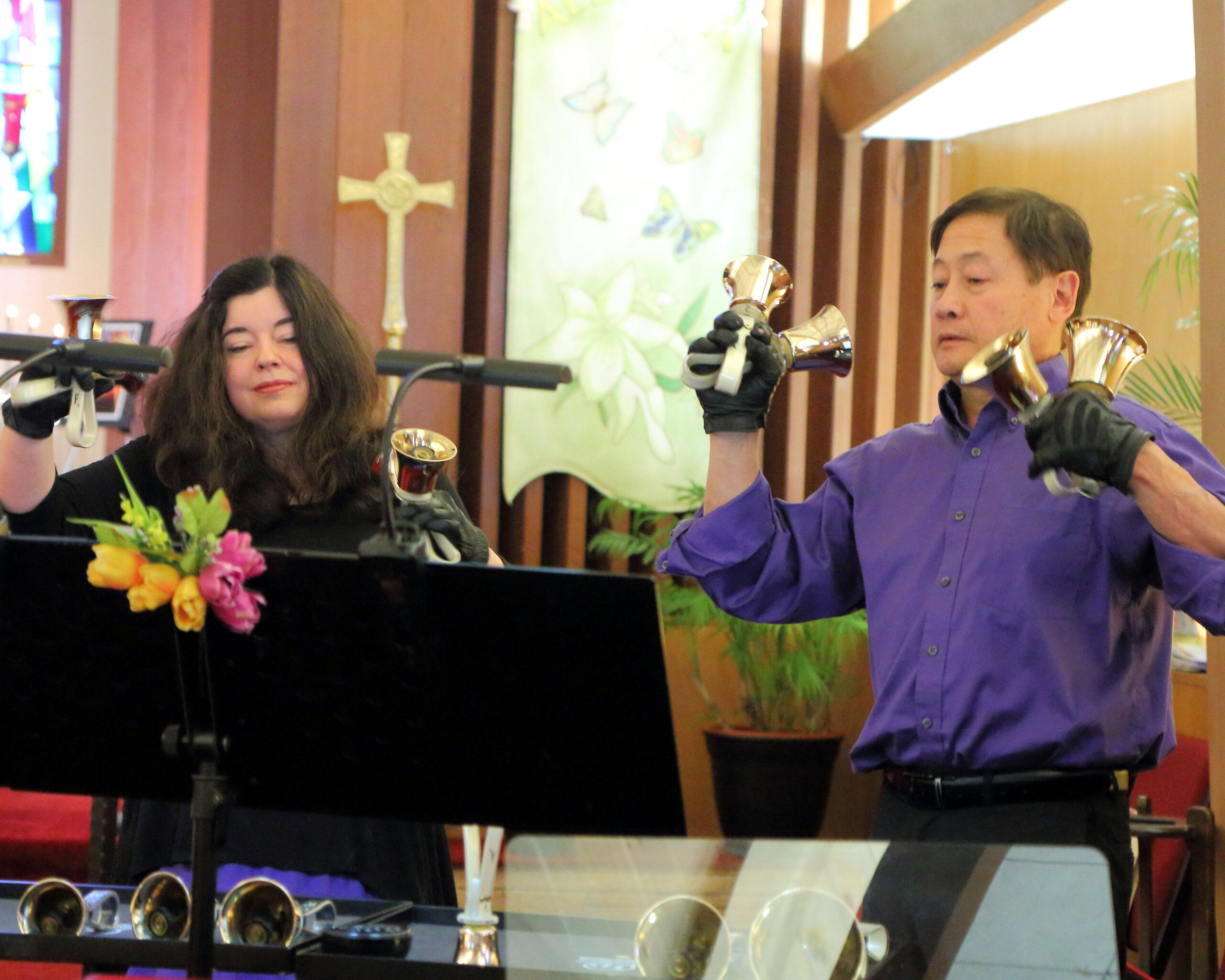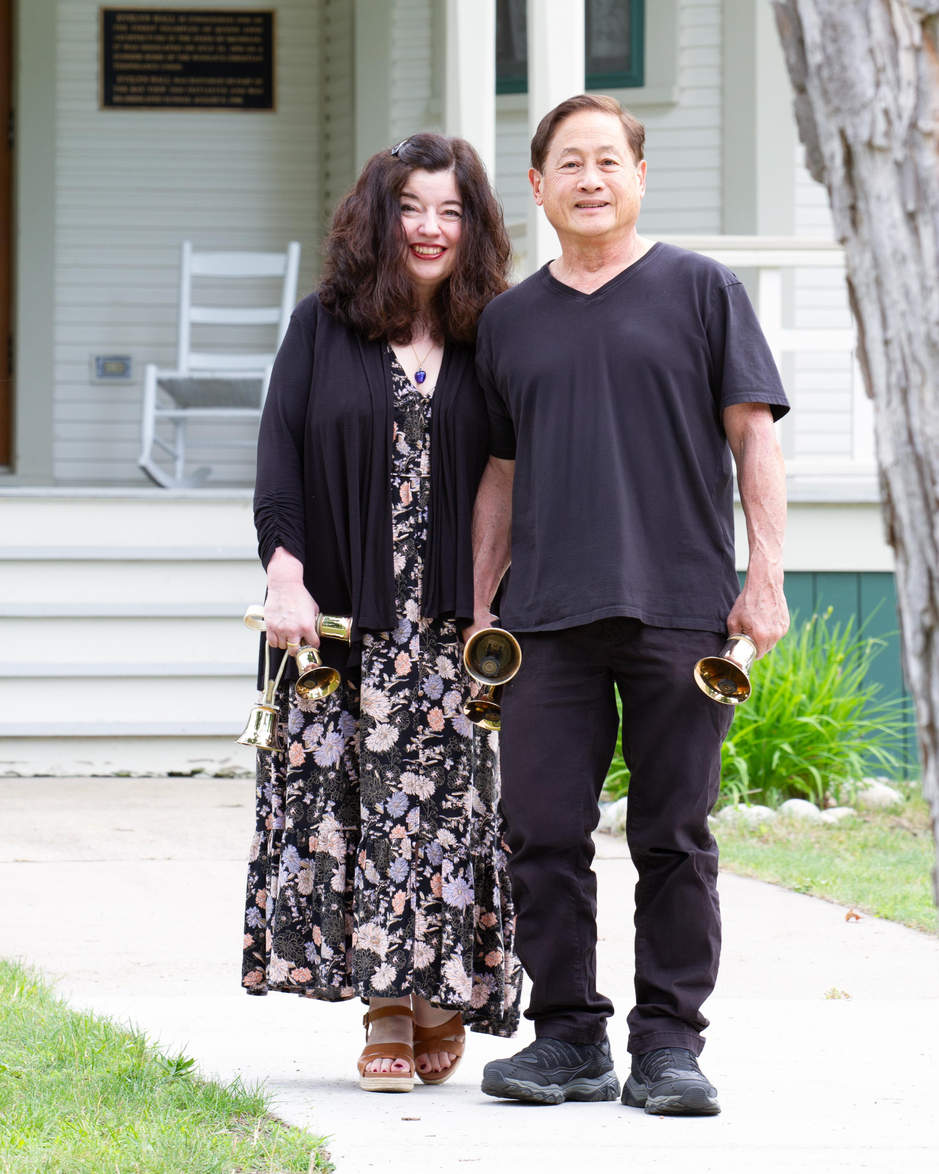 Larry and Carla met online in 2008, on a website for handbell musicians. Carla moved to the USA in 2012, where they were married and started performing handbell duets together. Over the years, they’ve built up a wide repertoire of pieces arranged for just eight bells. They have performed together and taught in California, Washington, Oregon, Georgia, Pennsylvania, New York City, New Jersey, Nebraska, Connecticut, Wisconsin, Ohio, and Michigan. They arrange all their own handbell duets, and they aim to demonstrate that handbell performances are not only beautiful to listen to, but can also be graceful and interesting to watch.